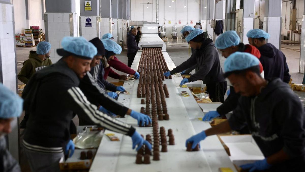 Pabrik makanan manis di Deir Al Balah, Gaza, Palestina bernama Al Arees perlahan kembali melanjutkan produksinya usai digempur habis Israel.